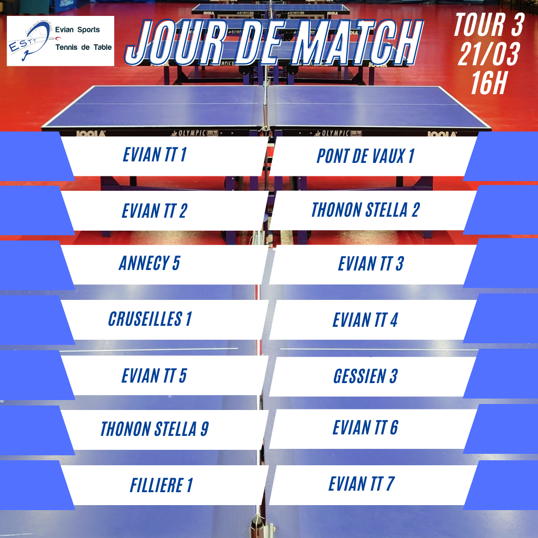 Pour ce 3ème tour du championnat, 4 équipes évianaises joueront à l’extérieur et 3 à domicile.