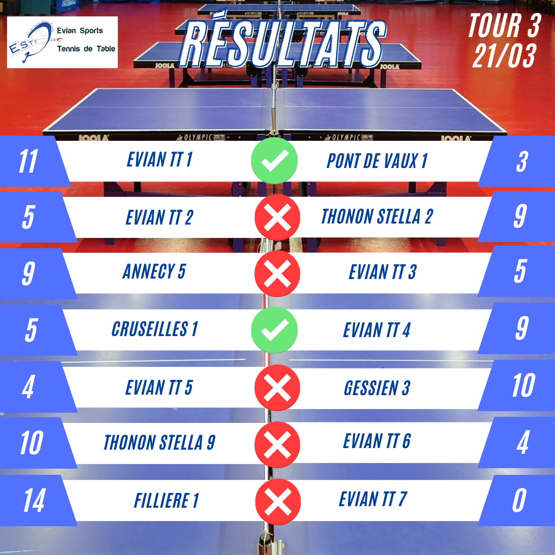 Résultats du 3ème tour des matchs par équipes ![]()
