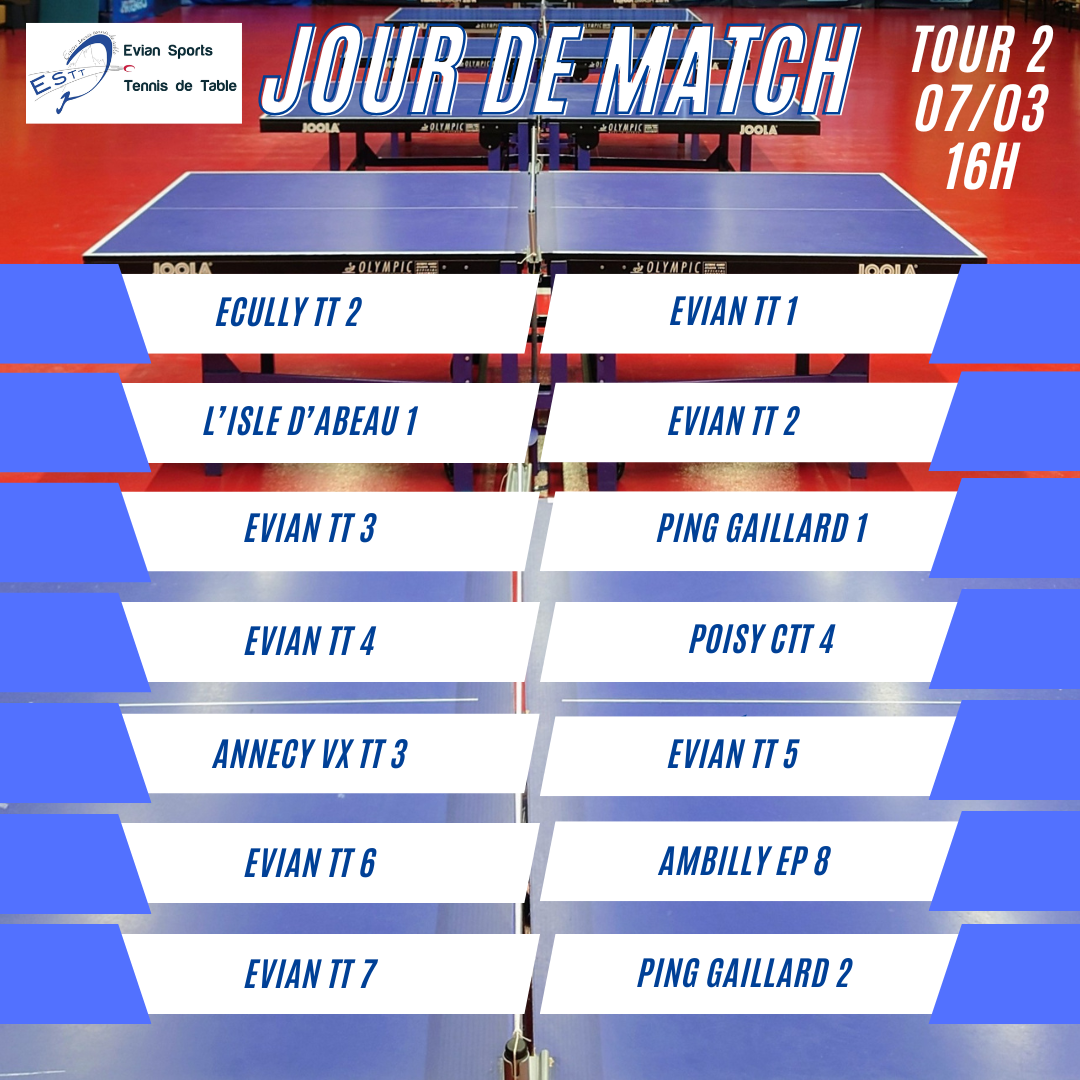 Lors de cette 2ème journée, 3 équipes évianaises joueront à l’extérieur et 4 à domicile.