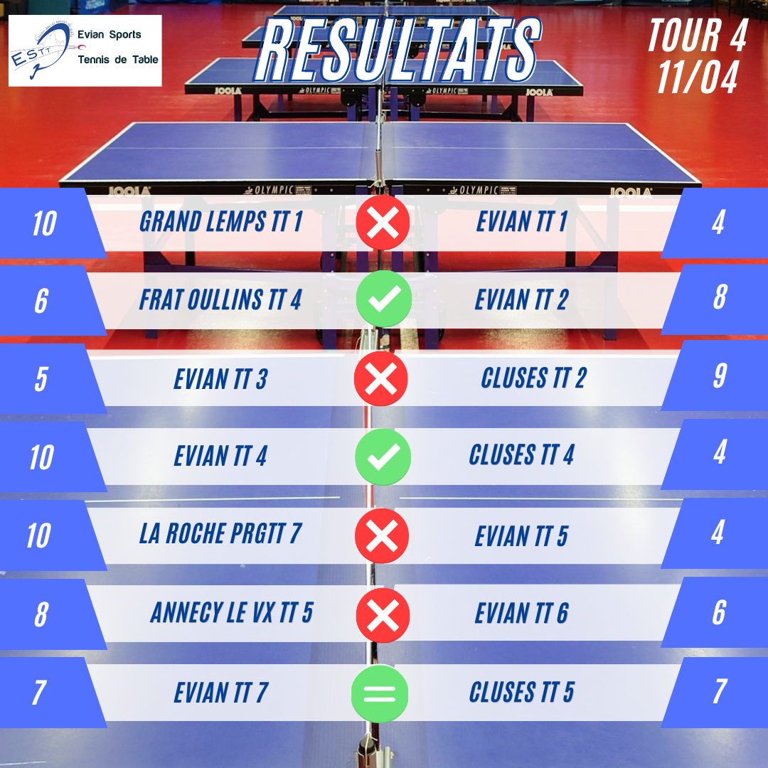 Résultats mitigés pour cette 4ème journée avec 2 victoires, 1 égalité et 4 défaites.